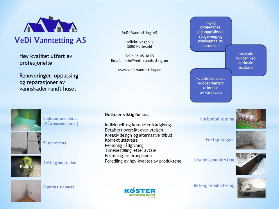Tel. 35 05 38 09 / E-mail: info@vedi-vanntetting.no